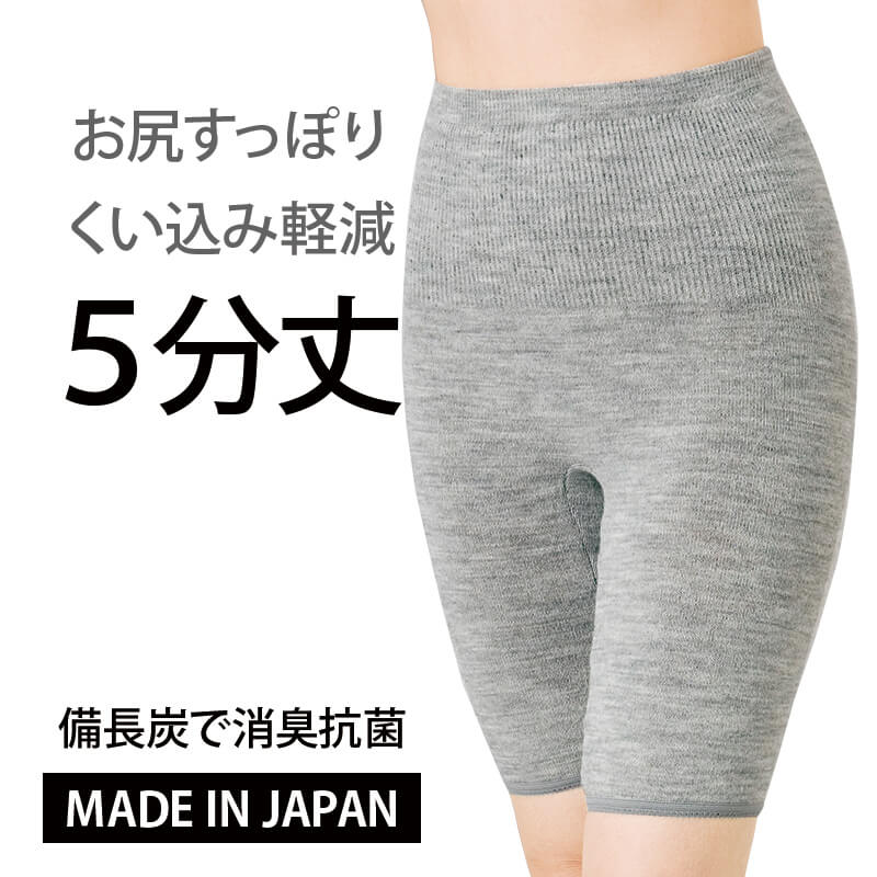 太ももまですっぽり覆う5分丈で下半身を冷えからガード。横の縫い目がありません。