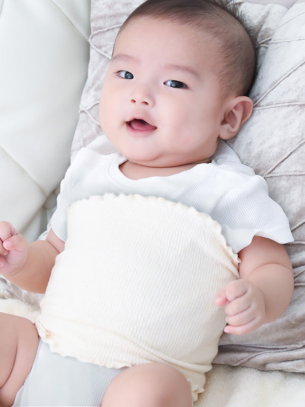 赤ちゃんはとっても繊細。エアコンが寒いだけで鼻風邪をひいたり、セキをしたり。腹巻きで寝冷え対策に。