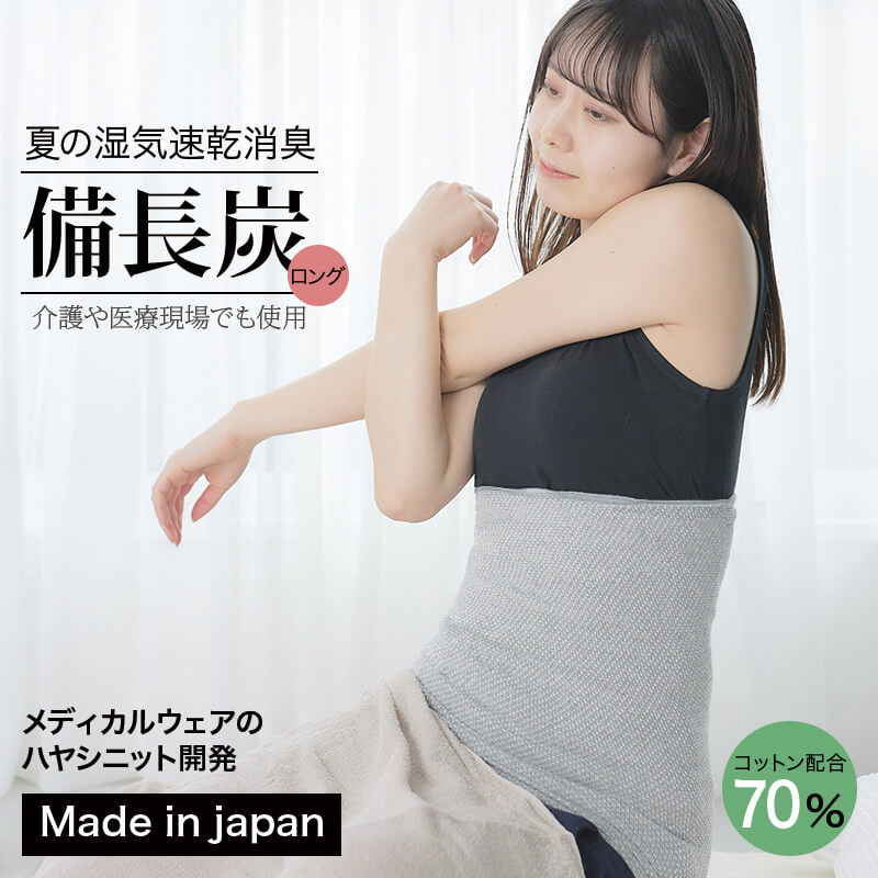天然の消臭抗菌作用で夏も快適・備長腹巻(ロング)