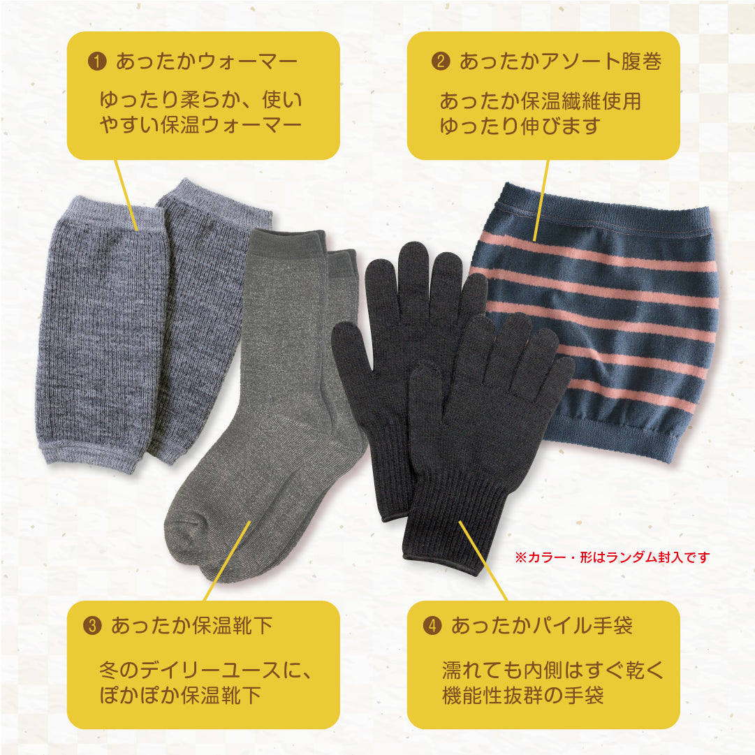 | 商品内容 | 靴下・腹巻・手袋・ウォーマー |